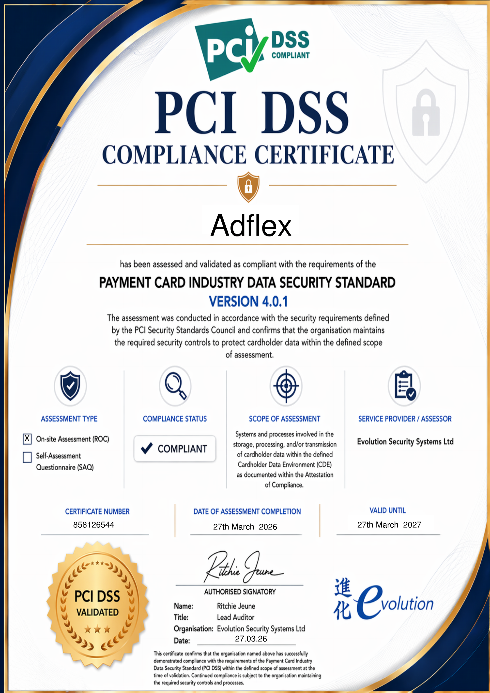 The Payment Card Industry Data Security Standards (PCI-DSS) is a global security standard created to help businesses process card payments securely. Our PCI-DSS Level 1 compliant payment platform allows our customers to process secure payments 24 hours a day, 365 days a year. The Adflex payment platform uses leading technology to process secure payments and protect confidential data against theft and fraud.