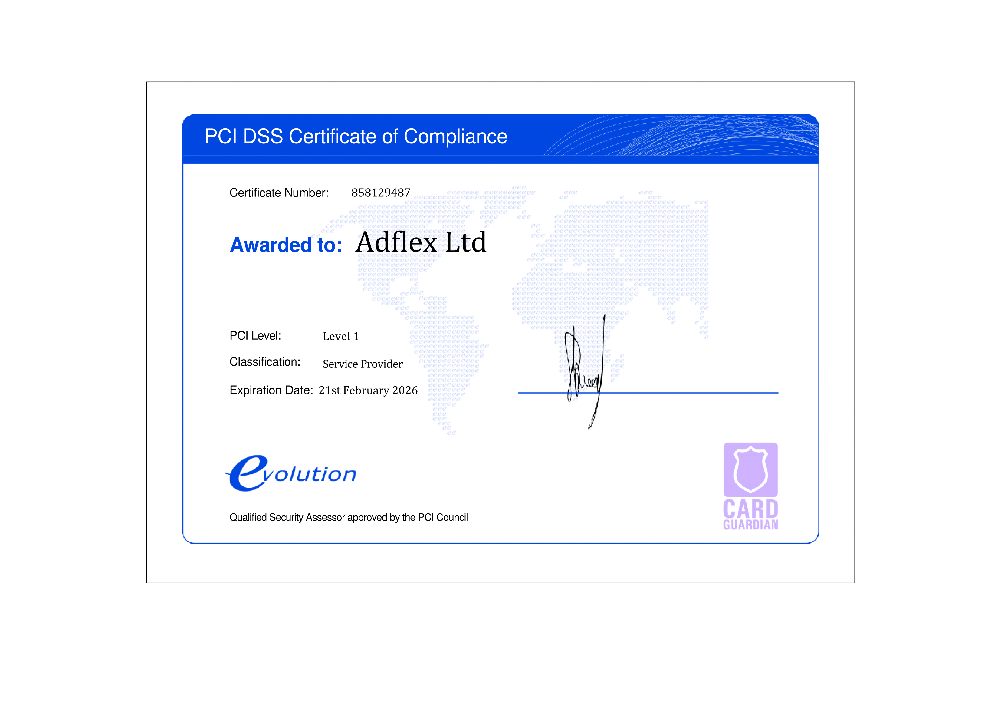 The Payment Card Industry Data Security Standards (PCI-DSS) is a global security standard created to help businesses process card payments securely. Our PCI-DSS Level 1 compliant payment platform allows our customers to process secure payments 24 hours a day, 365 days a year. The Adflex payment platform uses leading technology to process secure payments and protect confidential data against theft and fraud.